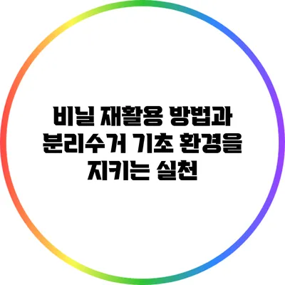 비닐 재활용은 우리가 할 수 있는 중요한 환경 보호 활동 중 하나예요. 이제는 비닐을 제대로 분리수거하고 재활용하여 환경을 지키는 실천을 해보세요! 작은 실천이 큰 변화를 가져올 수 있어요. 여러분의 참여가 필요합니다. 함께 환경을 지키는 시작해요!