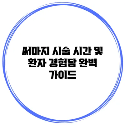 써마지 시술 시간 및 환자 경험담: 완벽 가이드