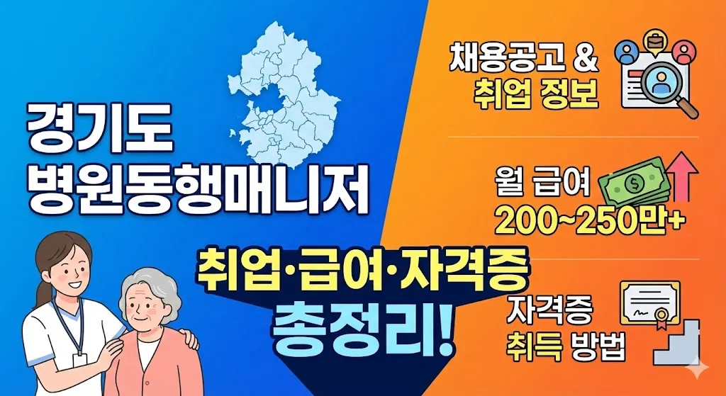 경기도 병원동행매니저 취업을 준비하고 계신가요? 고령화 사회가 가속화되면서 병원동행매니저는 가장 주목받는 신직업으로 떠오르고 있습니다. 이 글에서는 경기도 지역 병원동행매니저 구인 정보, 실시간 채용공고 확인 방법, 급여 수준, 자격증 취득 방법까지 취업에 필요한 모든 정보를 상세히 정리했습니다.